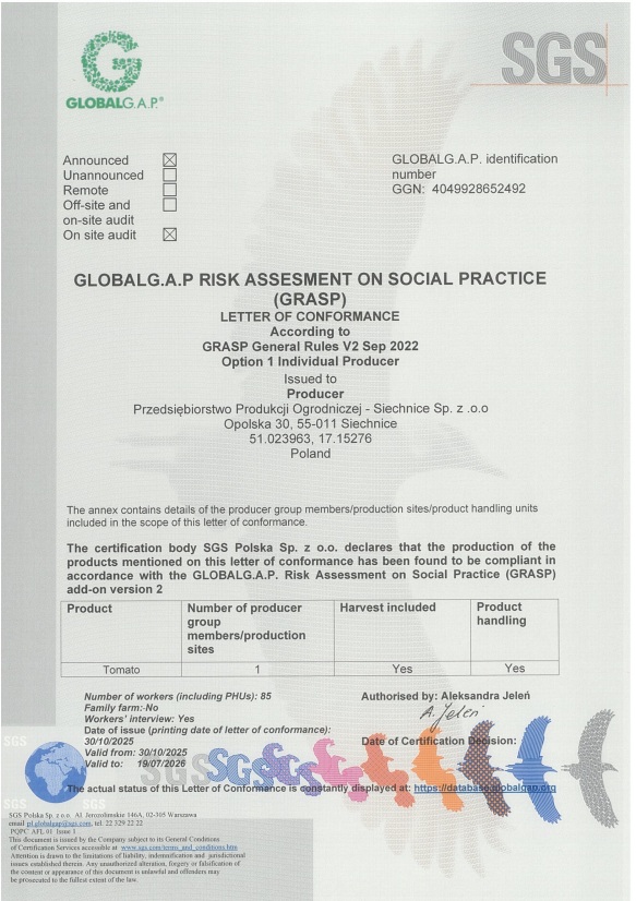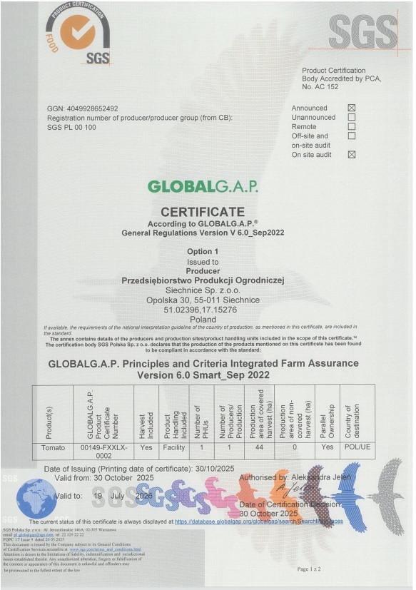 Certyfikat GLOBALGAP 2025